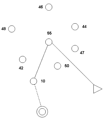 suunnistaa takaisin rastille 55. Tämän jälkeen kilpailija suunnistaa